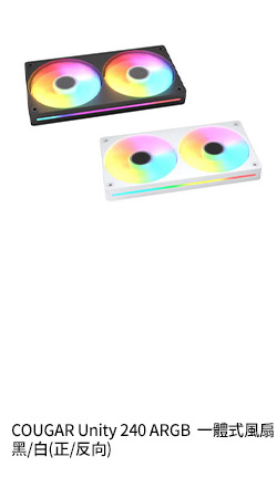COUGAR Unity 240 ARGB 黑(反向) 一體式風扇/側邊燈效/1600RPM/PWM/三年保
