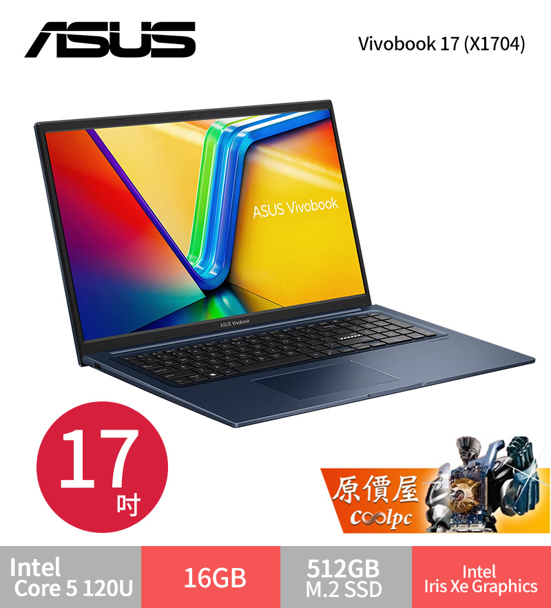 【預】華碩 Vivobook Core 5 120U/16G/512G/17吋 午夜藍 X1704VA-0091B120U $26999>蝦皮商城