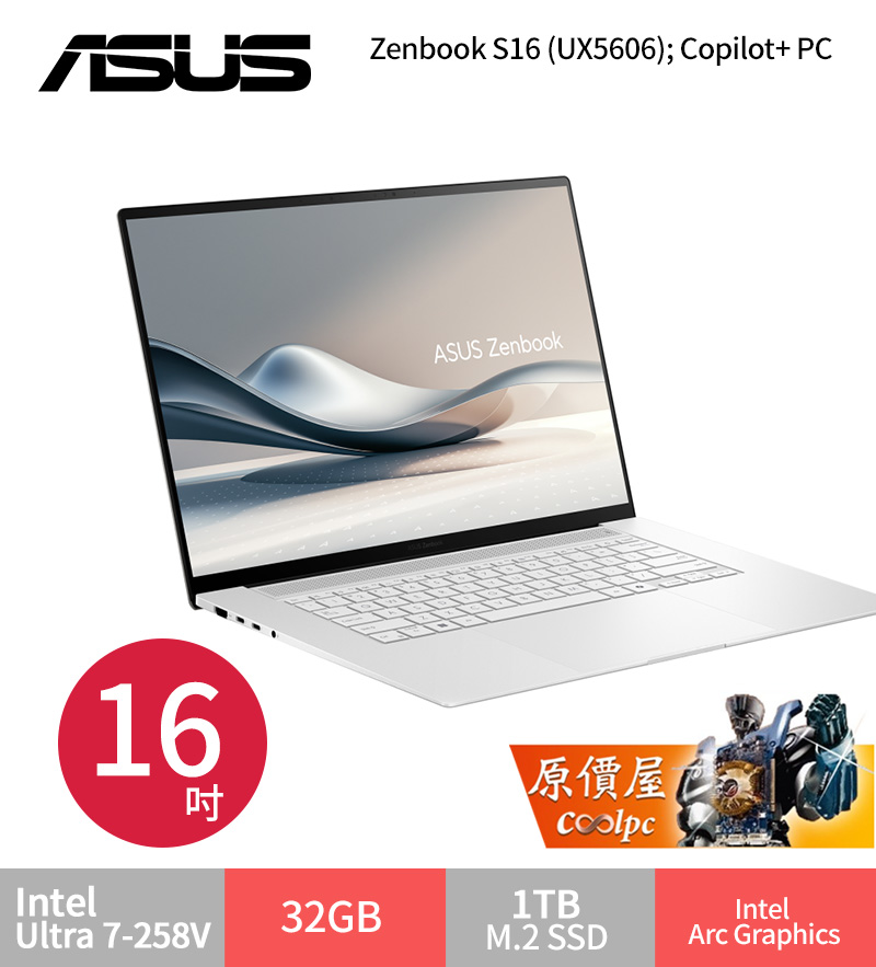 View Larger Image ASUS Zenbook S16 (UX5606); Copilot+ PCsasa2025-12-18T23:05:01+08:00 Project Description 華碩 Zenbook Ultra 7-258V/32G/1T/16吋 暖煦白 UX5606SA-0062W258V $54999>蝦皮商城>官網 (Visited 18 times)