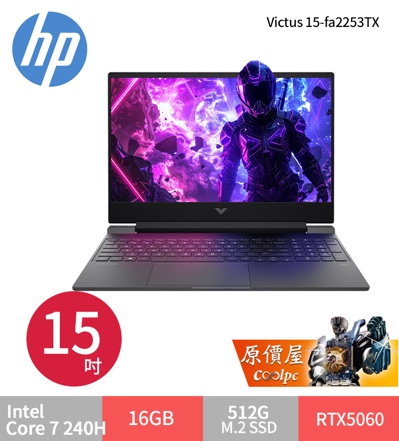 HP Victus Gaming Core 7 240H/RTX5060/16G/512G/15吋 黑 15-fa2253TX $45900>蝦皮商城>官網