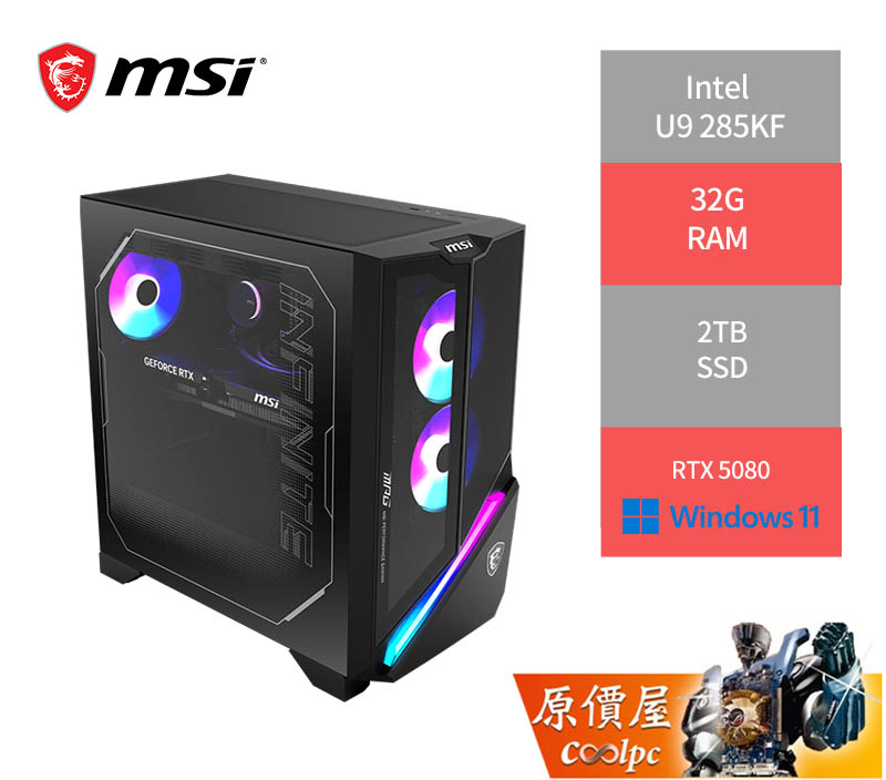 MSI Infinite X3 AI 2【086TW】Ultra 9 285K / 32G / 2T / WIN11 / RTX 5080【訂】$119800>蝦皮商城>官網
