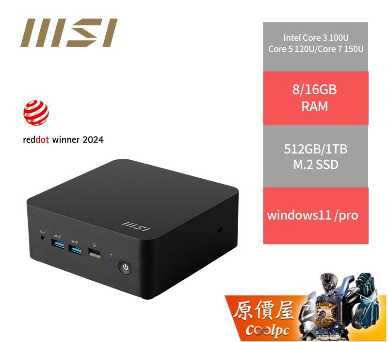 MSI CUBI NUC 1M【041TW】Intel Core 3 100U / 8G / 512G / WIN11 $16900>蝦皮商城>官網