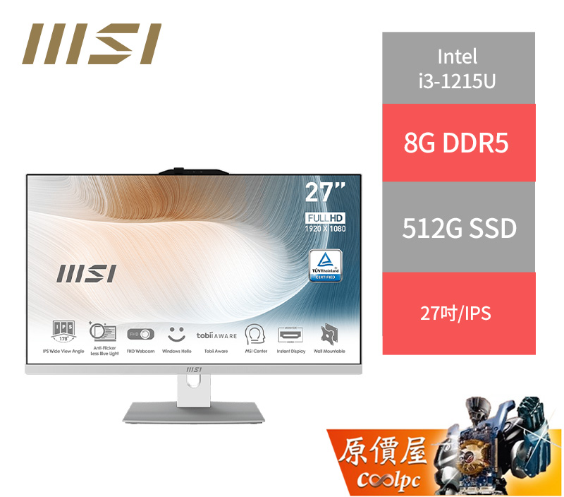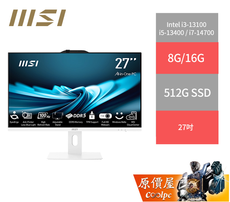MSI PRO AP272P 13MA【480TW】27吋/i3-13100/8G/512G SSD/WIN11/白 $22900>蝦皮商城>官網