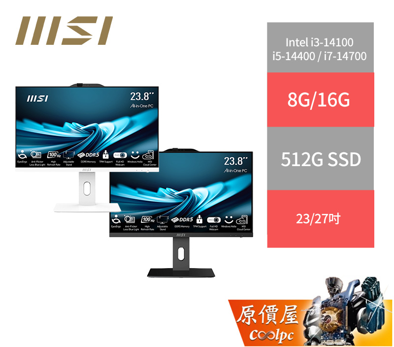 MSI PRO AP242P 14M【625TW】23.8吋/i3-14100/8G/512G SSD/WIN11/白 $20900>蝦皮商城>官網
