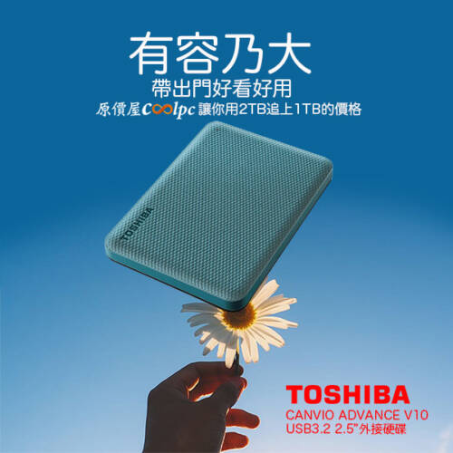 有容乃大,帶出門好看的TOSHIBA V10 2TB外接硬碟當1TB賣!