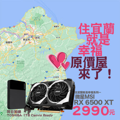 『住宜蘭就是幸福系列一』微星RX 6500 XT NT.2990原價屋宜蘭店限量開搶!