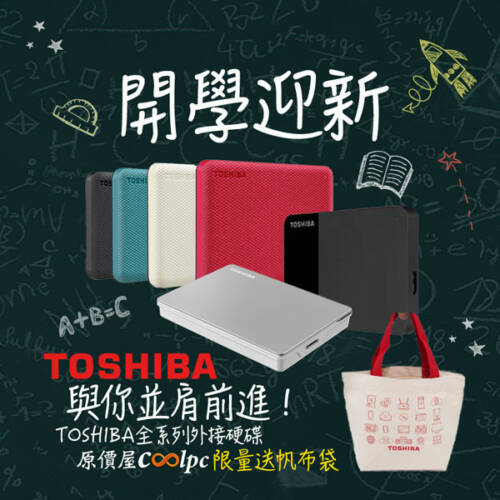 開學迎新!TOSHIBA新學期與你並肩前進!買TOSHIBA全系列外接式硬碟送帆布提袋。