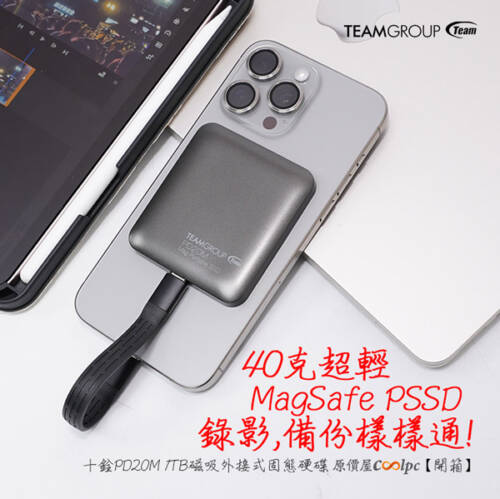 【開箱】40克超輕磁吸式外接SSD錄影、備份樣樣通!十銓 TeamGroup PD20M 1TB 磁吸式外接 SSD。