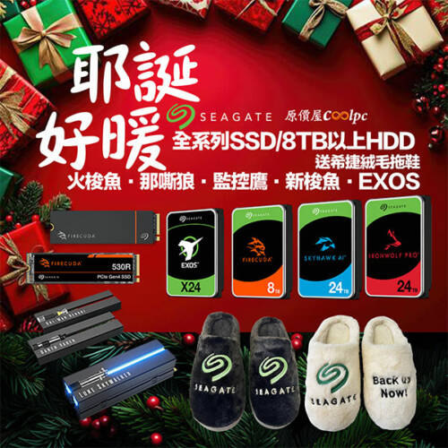 耶誕好暖!SEAGATE 全系列SSD/8TB以上HDD送希捷絨毛拖鞋!