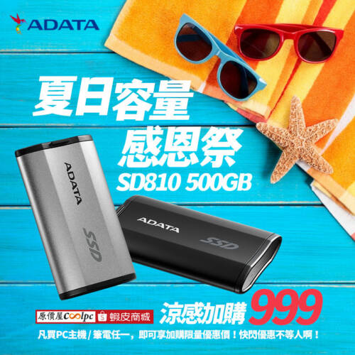 炎炎夏日不只天氣火熱,加購 ADATA SD810 500GB 也是 so Hot!限量享搭購價 999!