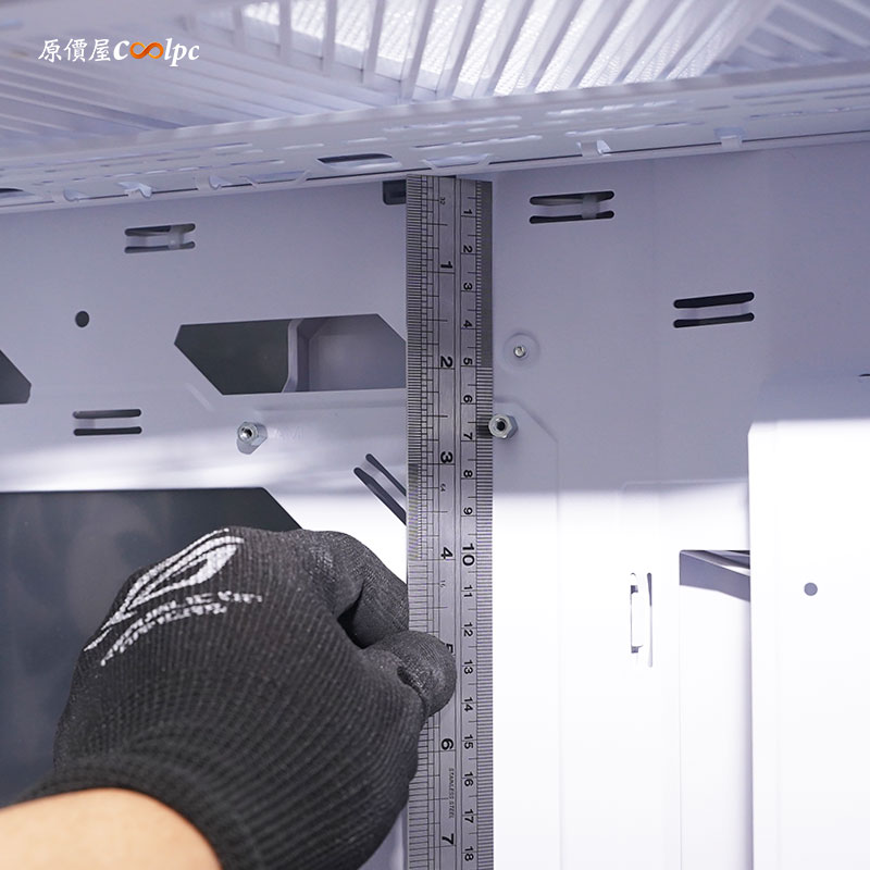 散熱器高度原廠支援 19 公分高度,實際測量到 20 公分其實都還不是問題,不過還得考量到主機板厚度和玻璃厚度,建議是不要超過 20 公分或比較妥當。