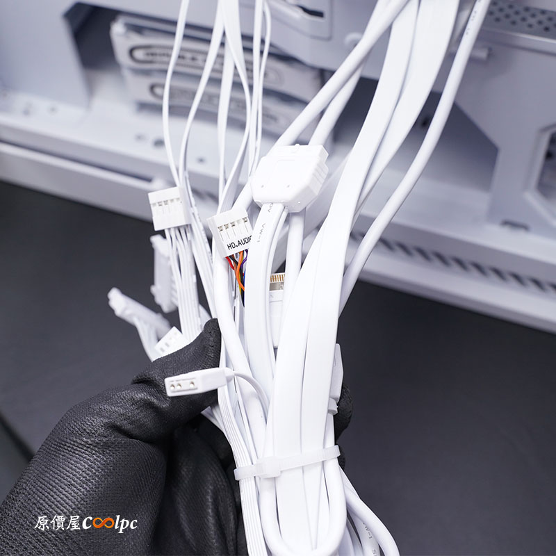 I/O 和風扇與 5V ARGB 燈光控制器線相當多,光是風扇和燈光控制器就要三條 SATA 電源,還有一條 5V ARGB 母頭是要讓你接主機板,可以與主機板燈光同步,還有F_PANEL、HD AUDIO、USB 3.2 Gen1、Type-C USB3.2 Gen2。
