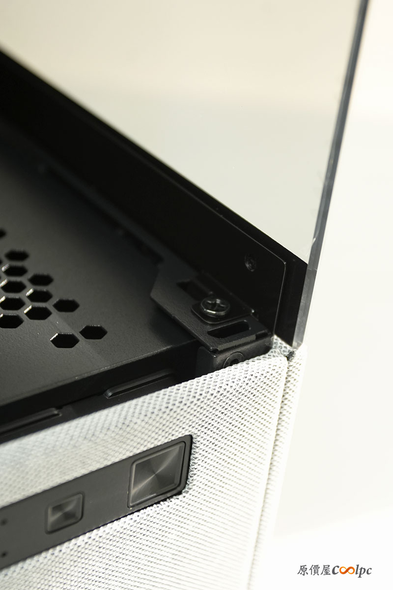 拆下玻璃面板後,可看到更清楚的整體架構,具備最高 ATX 規格主機板的安裝位置,也能支援現在最流行的背插式主機板。留有相當良好的走線與安裝空間。