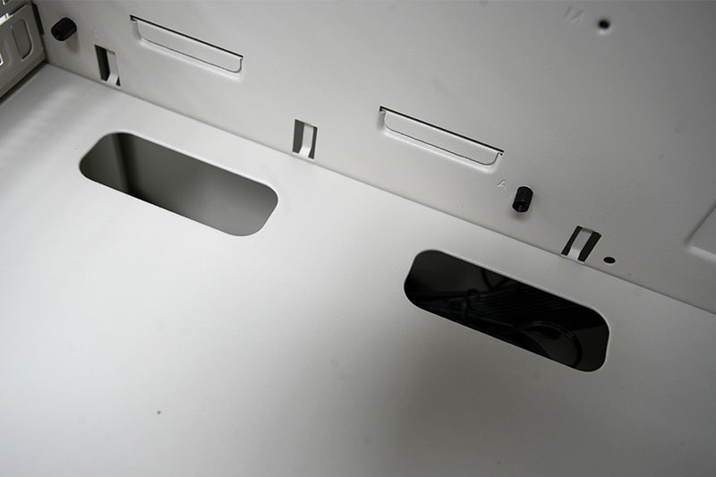 機殼底座,電源艙的下方也有長形的散熱孔位設計,也附有一組可拆卸的濾網。