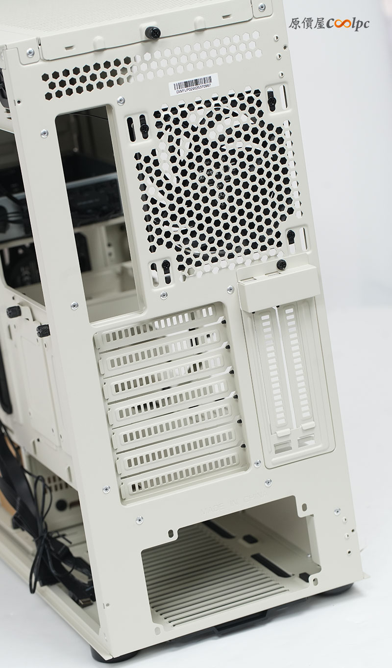 來看看格局方正的機殼內部吧。算是寬敞的設計,甚至在機殼的頂端位置,還能安裝最大 360mm 的水冷排。真的是能滿足中階以上玩家的要求。