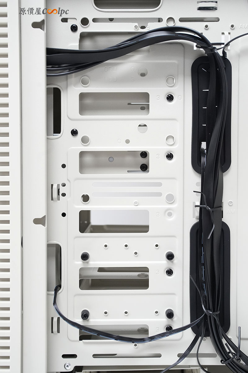 背板上可安裝硬碟架的設計。當然玩家也可以犧牲硬碟的安裝,卸除來增加顯卡安裝的空間。
