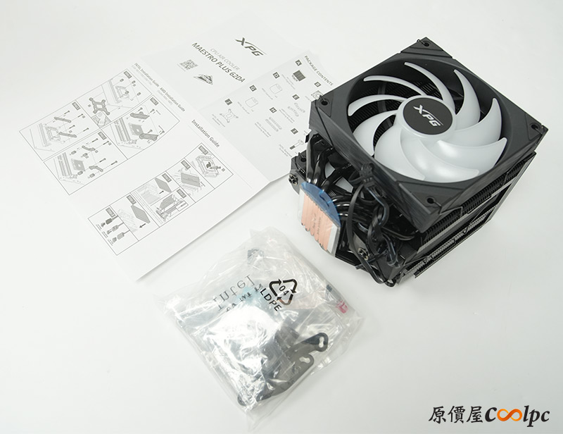 先從XPG MAESTRO PLUS 62DA開始,內容物有散熱器本體、安裝配件包、說明書。