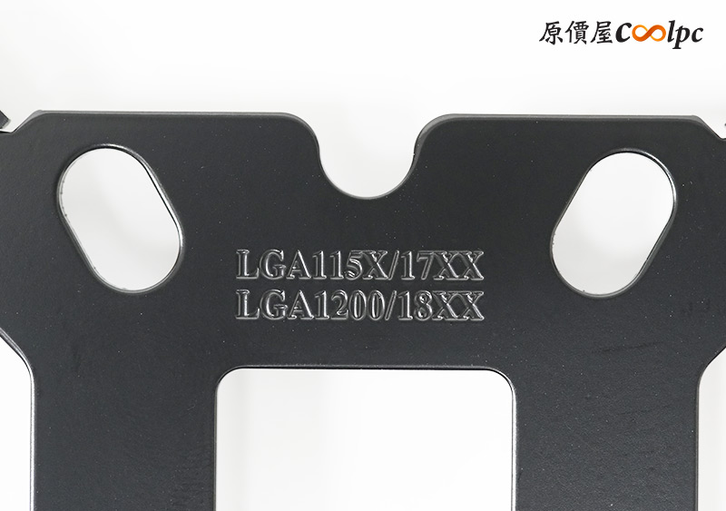 Intel平台會有一個金屬強化背板,上方標示了LGA 115X/1200/17XX/18XX腳位,並可以根據實際安裝的腳位調整螺絲孔位置,這點安裝時要特別注意,才能讓散熱器達到最佳效果喔。