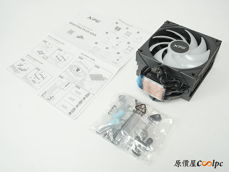 接著換到XPG MAESTRO PLUS 42SA,包裝內有散熱器本體、安裝配件包、說明書。