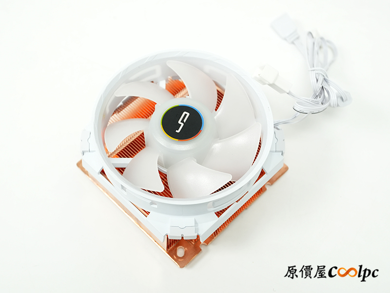 首先來看純銅板的 C5 CU,體積只有 97 x 97 x 54.9mm,對付各種寸土寸金的迷你機殼來說非常餘裕。亮眼的橘紅銅金搭配 RGB 純白風扇,裝在機殼裡真的非常吸睛!