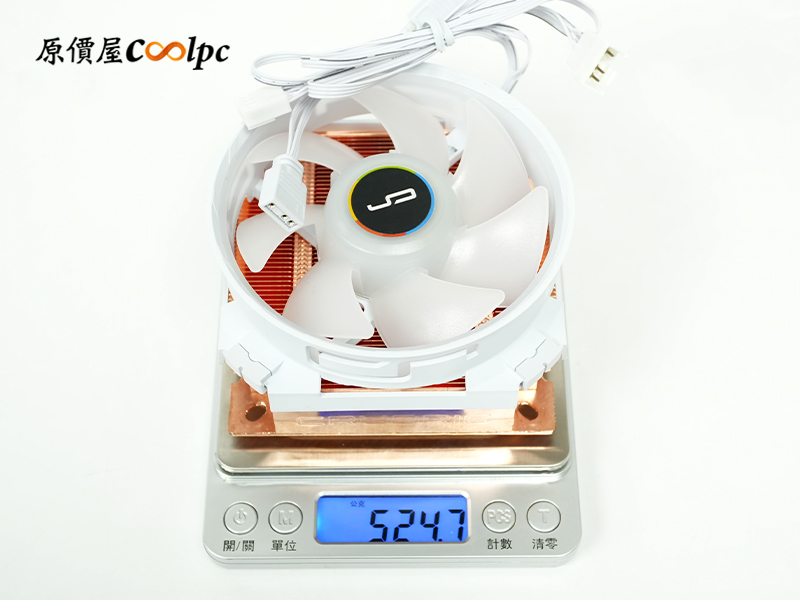 重量方面,一般版單本體為 240 公克,加上風扇後則來到 340 公克。雖然比全銅版輕不少,但手感依然紮實,重量甚至逼近一些入門級的一般塔型散熱器。