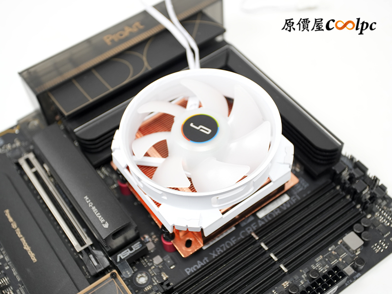 外型與大小基本上跟全銅版完全一致,不過一般版的配色改為全黑,視覺上更顯內斂,這也是小編偏好的風格。風扇部分同樣具備 RGB 燈效,但扇框也同步改成了黑色,維持整體的統一感。