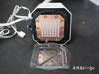 水冷頭底部已預塗導熱膏,並用透明泡殼保護,小編自己是比較喜歡這樣的設計,不用自己擠導熱膏之外,也能避免忘記撕膜的意外。