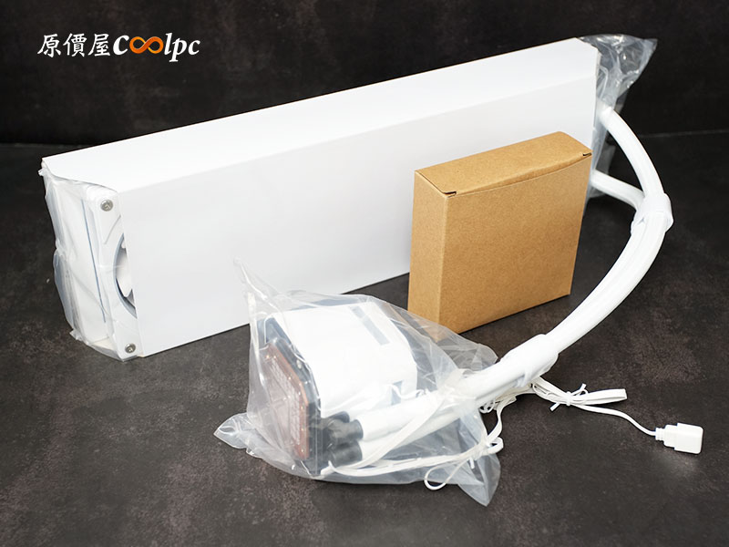 水冷排本體除了用塑膠套保護之外,還多加一層紙套防護,配件類也有紙盒包裝,安全到位!