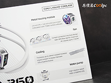 (點圖放大)這顆螢幕冷頭外觀幾乎被金屬鋁外殼完整包覆,質感相當不錯!雙螢幕的配置是主螢幕 2.8 吋 IPS 面板,解析度達 480×480,而副螢幕則是 1.44 吋小螢幕,主要用來顯示水冷液溫度。雖然在外盒上對副螢幕的介紹不多,實際使用只能即時看到水冷液溫度資訊,但對於監控來說卻相當足夠了。