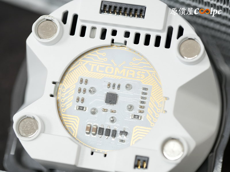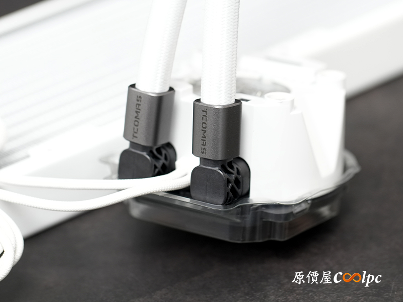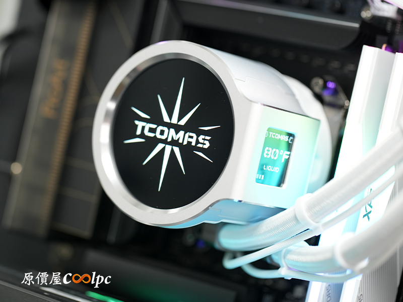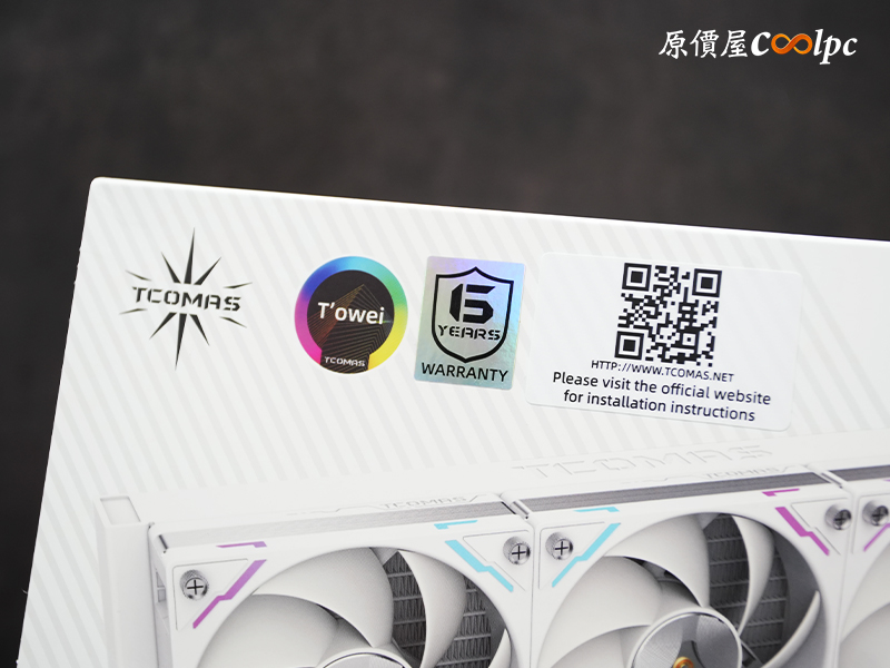 冷排側面印有鈦鉭 Tcomas Logo 做裝飾。
