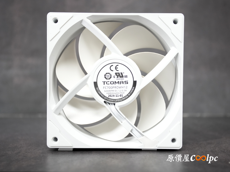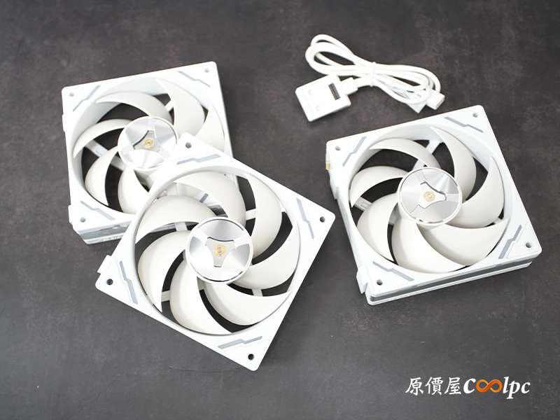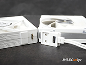 (點圖放大)內附的三顆 FC700PRO 積木風扇 厚度約 30mm,從官方規格來看,最高轉速可達 3200 rpm,搭配 115.32 CFM 的超大風量與 7.48 mmH2O 的高風壓,光看數據就知道相當兇猛,散熱能力自然不在話下。安裝方式採用磁吸拼接+金屬接點設計;側面及正面有金屬拉絲及 ARGB 燈效裝飾,就連質感也是一流的。
