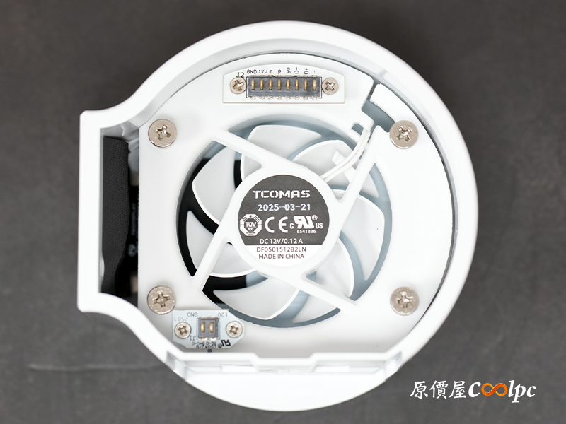 螢幕是透過磁吸搭配金屬接點來連結的,安裝拆卸都很直覺。更有意思的是裡面竟然還藏了一顆 5cm 5015 規格的小風扇,最高轉速可達 3500 RPM,專門幫主機板的供電元件帶走熱量,小細節也顧得相當周到。