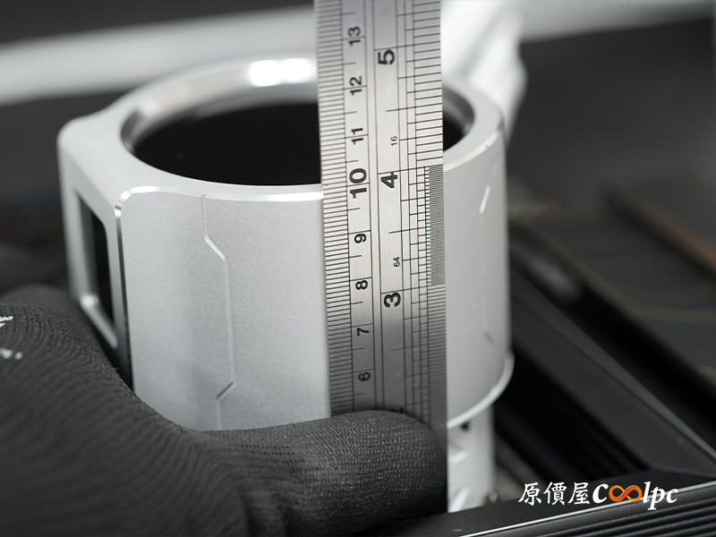 周圍空間控制得不錯,因此零件自然往上堆疊,實測高度大約近 10 公分,這也就注定這顆水冷只能安裝在大尺寸機殼裡了。