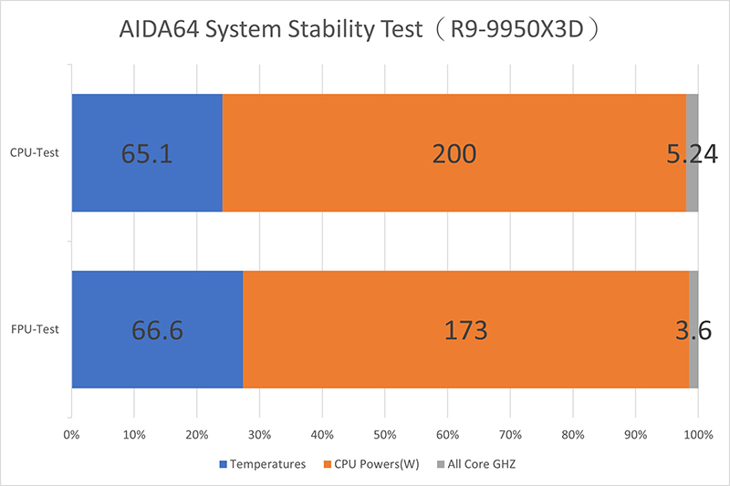 接下來來看看實際溫度表現!這次測試平台使用 AMD Ryzen 9 9950X3D,搭配 AIDA64 System Stability 進行 CPU/FPU 壓力測試 10 分鐘。結果溫度均穩穩壓在 65~66°C 左右,散熱表現真的相當給力啊!
