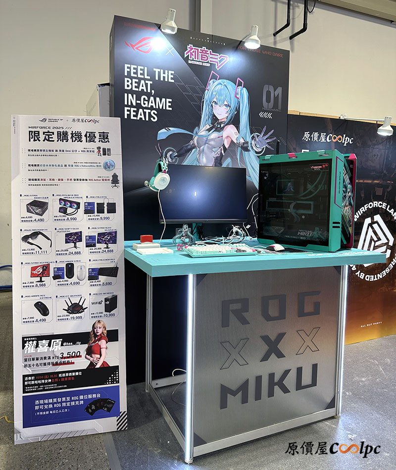 除了商品促銷,現場也有展示 ROG 初音未來主機,就算甚麼都不想買也歡迎來逛!可以到 ROG x FF 體驗區試玩過過癮!現場還有 BYOC 舞台活動,有《快打旋風 6》線下挑戰賽、Cosplay 大賽、日系偶像表演與 ACG 樂團接力,免費入場的電競娛樂天堂絕對讓你 high 翻天!保證讓你流連忘返!現場加碼福利滿載:購華碩主機板即贈 Omni Figurine 公仔一套加 ROG 清潔工具組;購買 ROG 初音聯名商品送獨家 ROG X MIKU 抱枕;現場買 ROG 商品,可前往 ROG 官方攤位兌換『潮玩撲克牌』乙份(或等值贈品);商品和贈品都是限量的唷!有空的朋友歡迎 11/13~11/16 前來 2025 WirForce 活動會場參觀,說到底,原價屋永遠是玩家後盾,小編屆時會親臨戰場捕捉每個珍貴的畫面,千萬別把我排擠在外,留一些福利讓我午餐時間也去搶一波嘿!