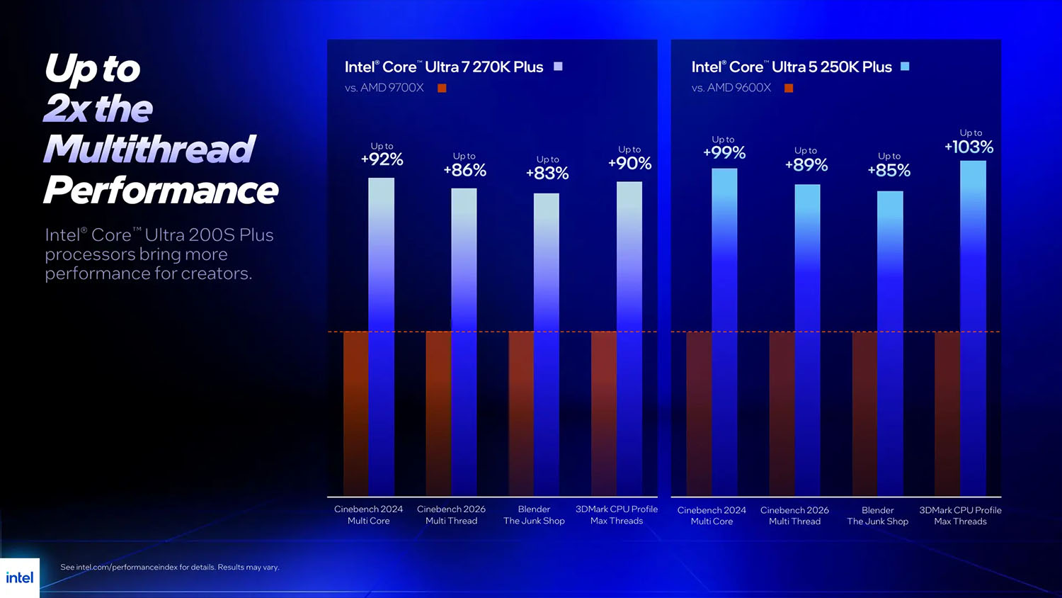 CPU:Intel Core Ultra 7 270K Plus、Ultra 5 250K/KF Plus、Ultra 9 285K
