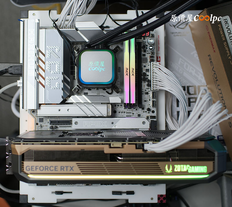 (點圖放大)為了更好的呈現 Intel® Core™ Ultra 200S Plus 系列處理器的能力,顯卡搭配當今地表最強的 ZOTAC GeForce RTX 5090 AMP Extreme INFINITY,其具備流線型的 INFINITY 系列外殼設計,質感與散熱實力皆屬頂尖!散熱部分則由微星 MAG CORELIQUID A13 360 水冷扛起重任,獨特的冷頭設計不僅視覺搶眼,更能確保處理器在 100% 負載下依然穩定。你說這冷頭怎那麼特別有原價屋 logo?因為他是支援 3D 列印客製化的可替換設計!(點我看開箱)