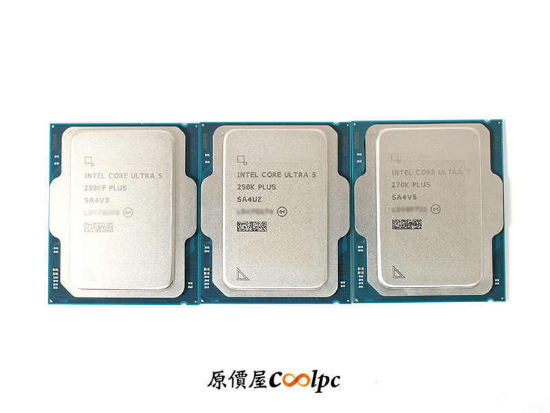 由左至右分別是 Intel Core Ultra 5 250KF Plus、Intel Core Ultra 5 250K Plus、Intel Core Ultra 7 270K Plus。