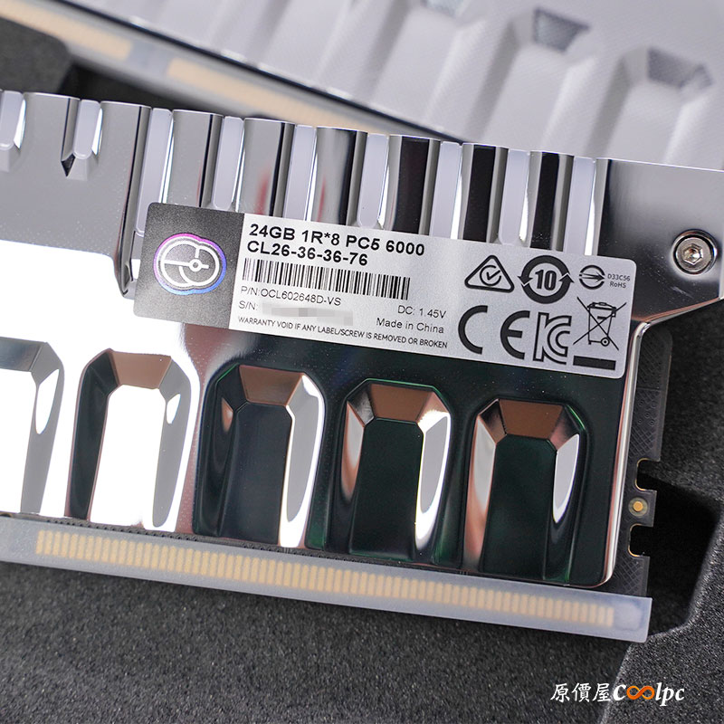 記憶體單條為 24GB 容量 CL 26-36-36-76 ,電壓 1.45V。