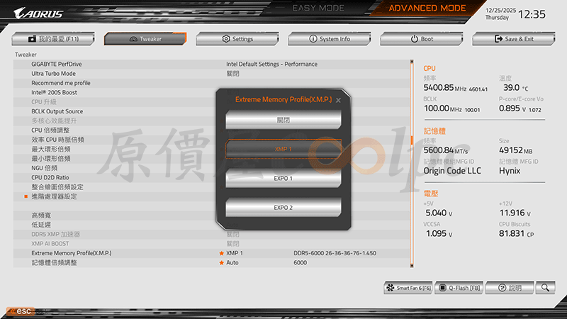 Origin Code Vortex RGB 48GB 雙 EXPO 參數三風扇散熱模組記憶體開箱