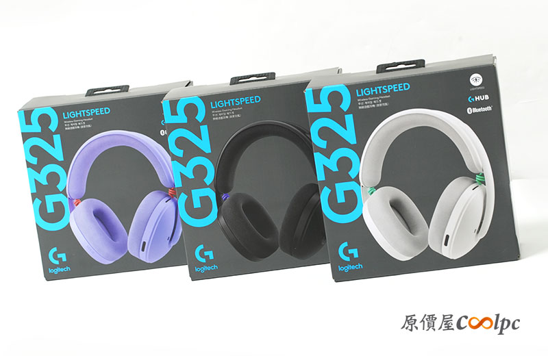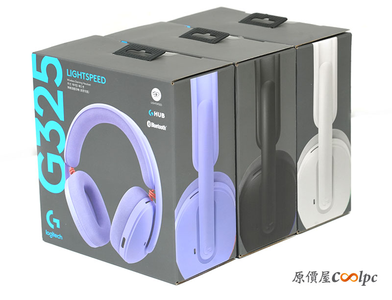 「羅技 G325 LIGHTSPEED 無線電競耳機」三色齊發!共有暗夜黑、極地白、丁香紫 3 款顏色。我們這次也以「丁香紫」為開箱主軸。