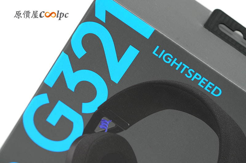 G321 Lightspeed 的外包裝採用羅技一貫的藍字黑灰底配色,正面清楚標示「LIGHTSPEED 」以及「G321」的字樣,還有產品的外型。一眼就能看出耳機的外貌身分。