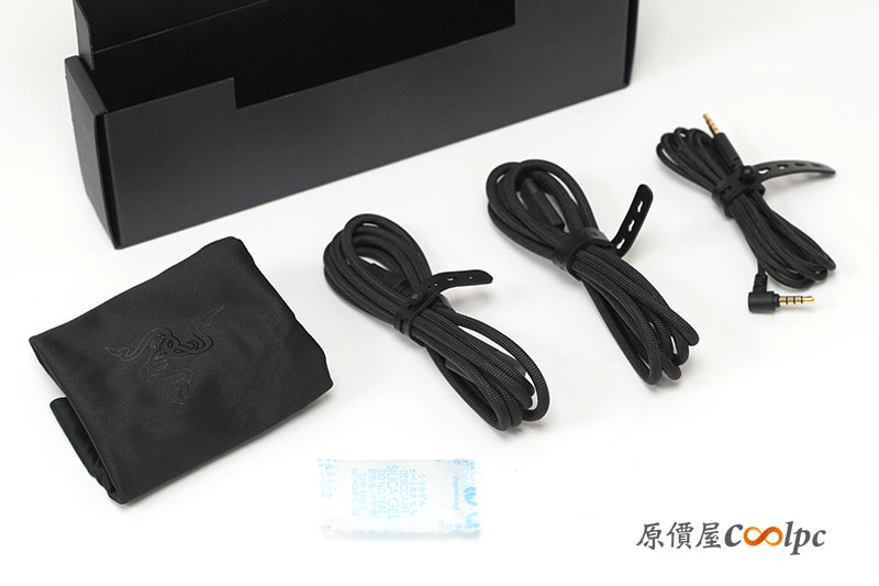 配件盒裡面也包含了一條 USB Type A、一條 USB Type-C,以及一條 3.5 mm。另外也有一個精緻的耳機收納袋。