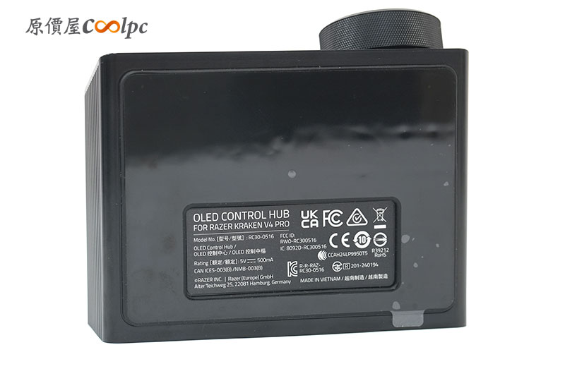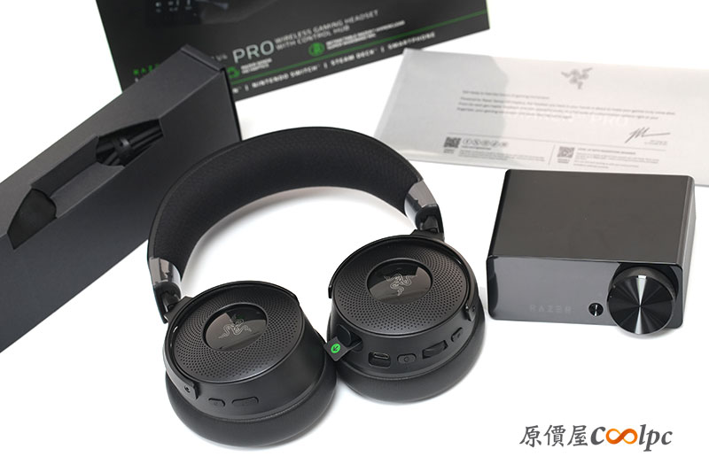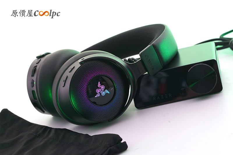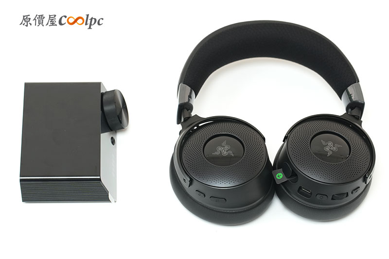 Razer Kraken V4 Pro 無線耳機主要的兩個本體。耳機,還有 DAC 主控。