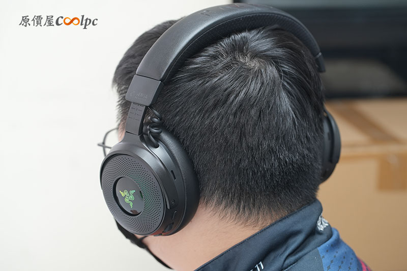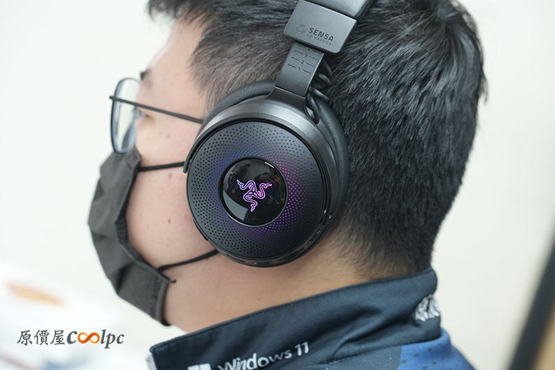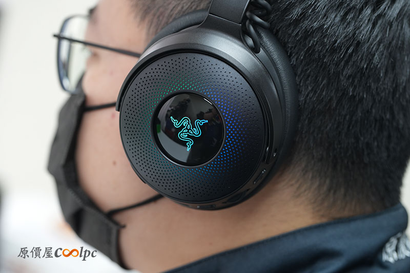 漂亮有質感的耳罩設計。中央還有雷蛇的 LOGO。