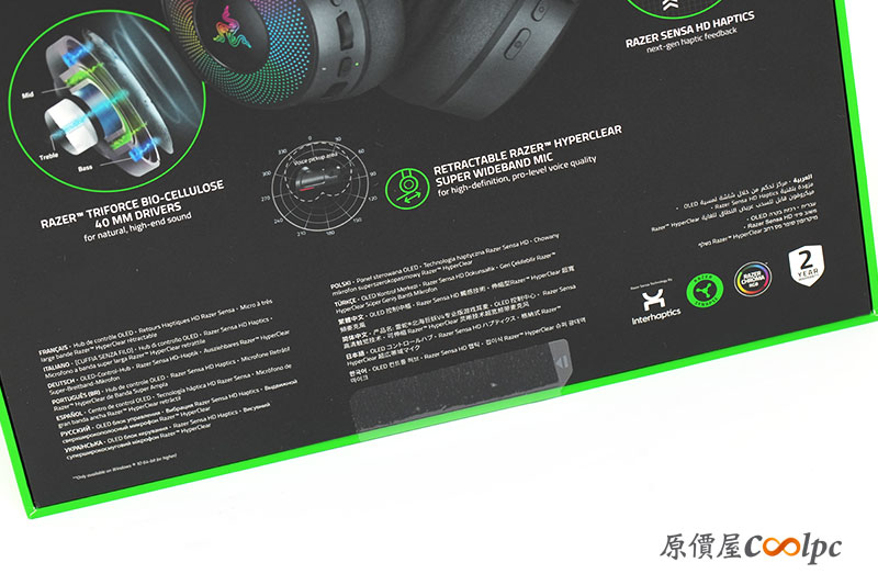 頭帶的頂端也特別在皮革表面上刻上 RAZER 字樣。