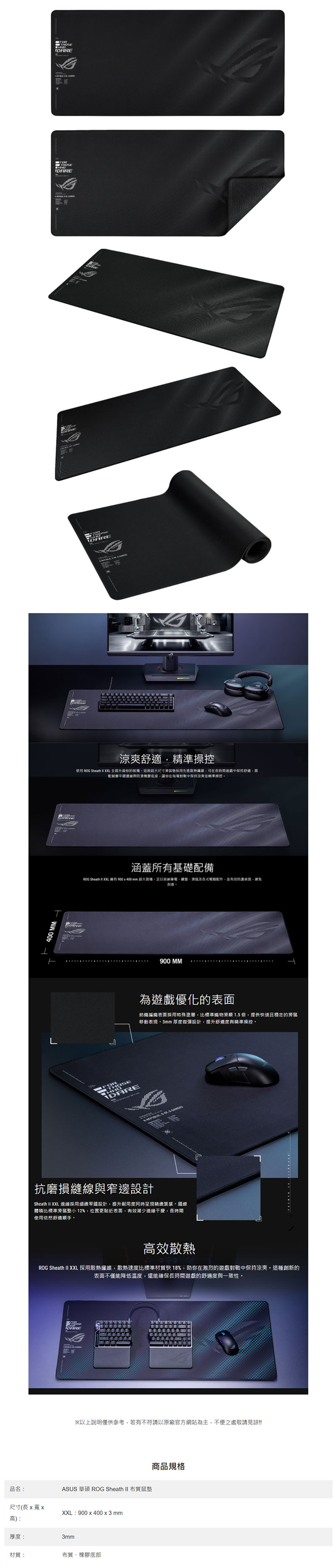 ASUS ROG Sheath II XXL 電競鼠墊(黑)(900×400)