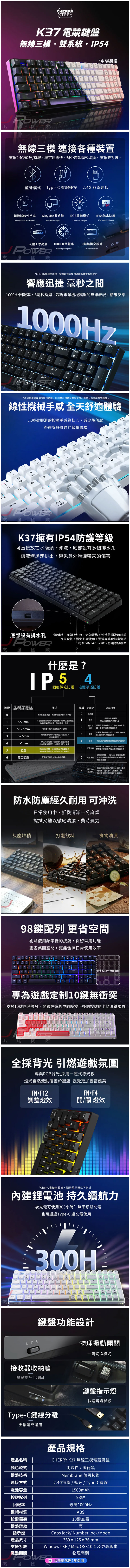 三模連線+RGB+IP54!Cherry K37 直接越級打怪!