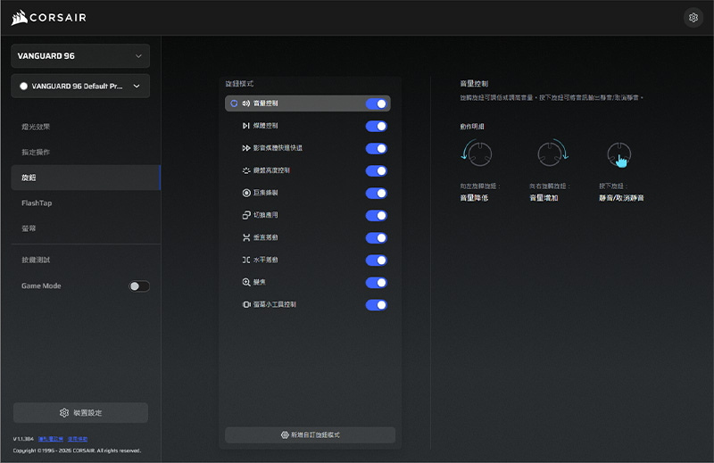除了強大的 iCUE,現在海盜船還推出了網頁版的 CORSAIR Web Hub,不用安裝臃腫的軟體就能自訂功能,完全跟上現在的輕量化趨勢!它功能非常全面,連更新韌體都沒問題,基本功能幾乎能完美取代原生軟體。唯一的遺憾是,如果想設定側邊那 6 顆 G 鍵,還是得載回 iCUE 才行。雖然稍微可惜了一點,但對大多數操作來說已經方便太多了。