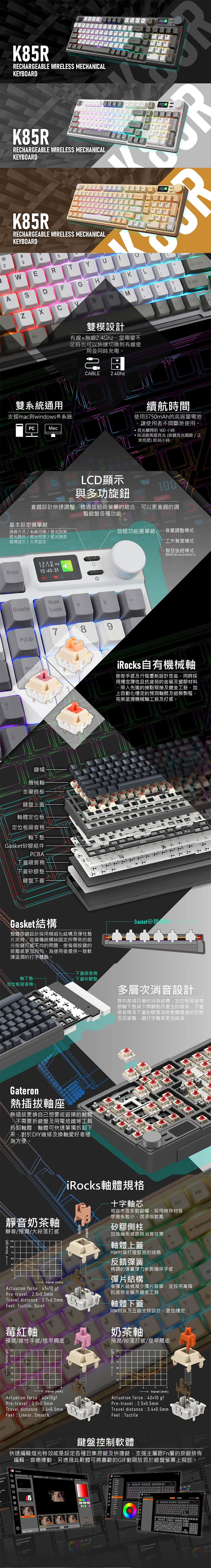 .Irocks K85R 無線機械式鍵盤(石磨灰)中文/莓紅軸/奶茶軸 $3990↘$3590